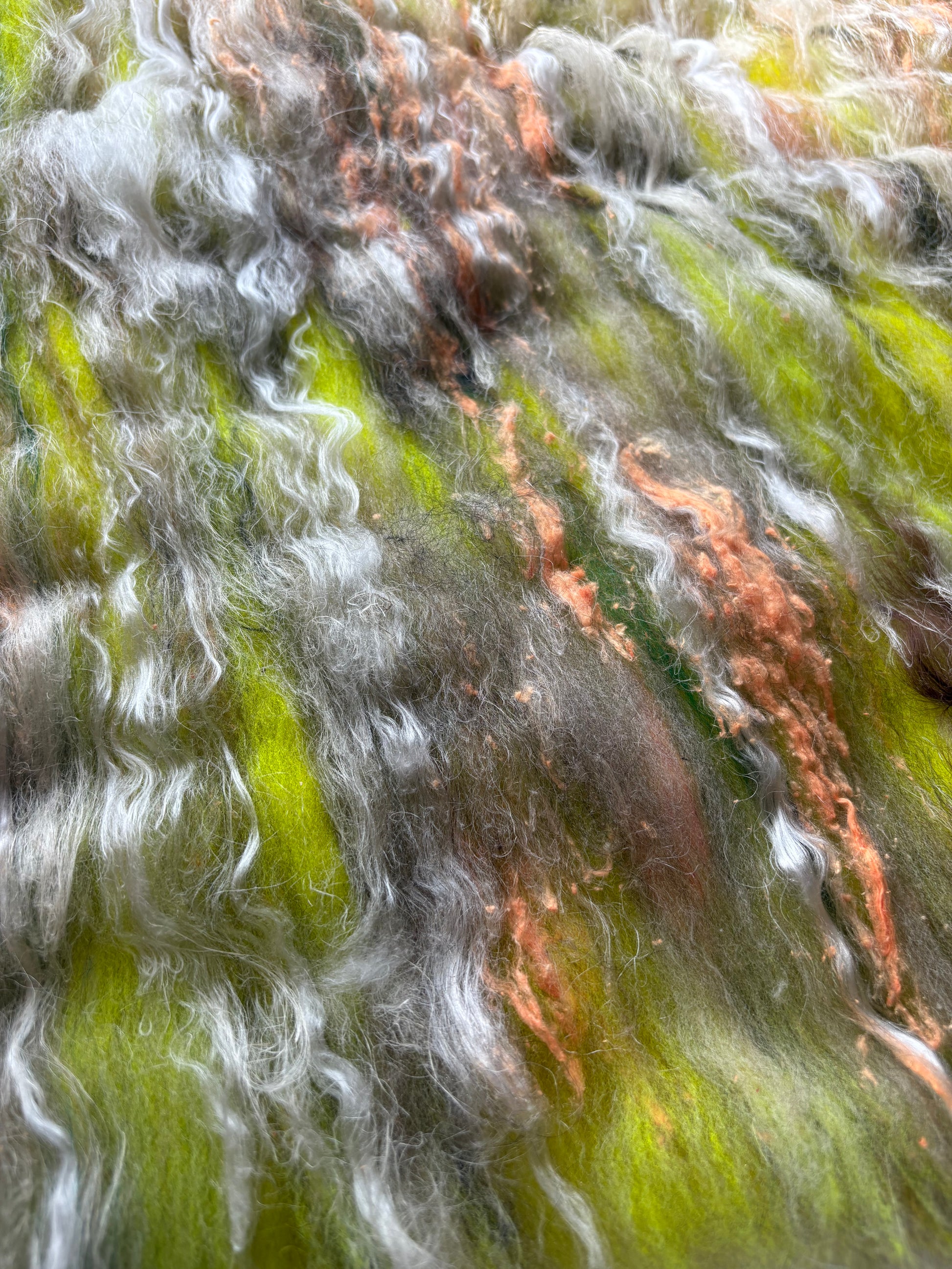 *this batt was made using fibers from animals that are free to roam outside. I do my best to pick and clean the fibers myself, but please except vegetable matter to be present.*